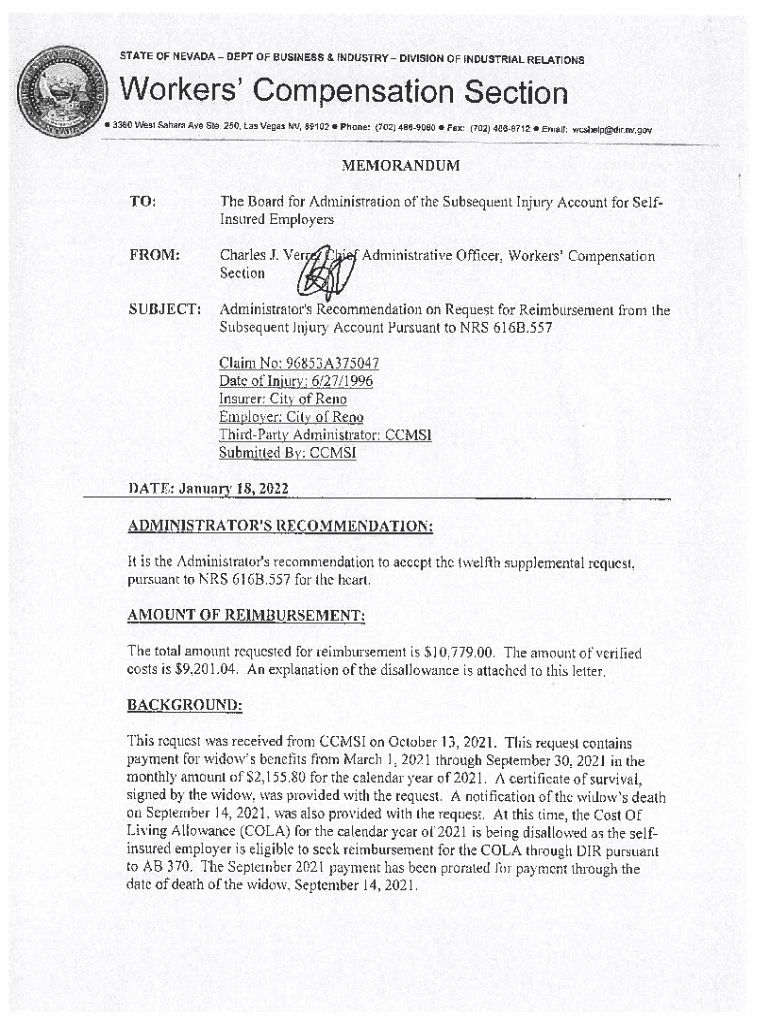 STATE OF NEVADADEPT OF BUSINESS & INDUSTRYDIVISION OF INDUSTRIAL RELATIONSWorkers Compensation Section