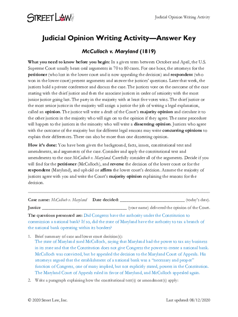 Get the free Judicial Opinion Writing ActivityAnswer Key - Landmark Cases