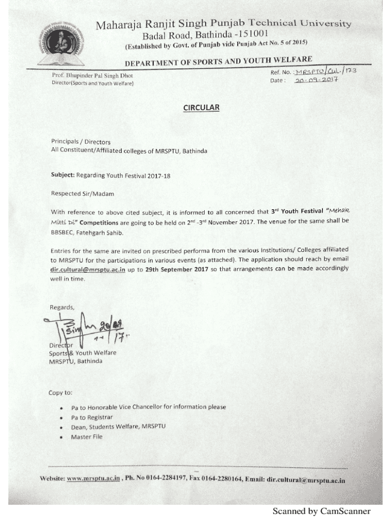 Scanned by CamScannerMaharaja Transit Singh Punjab Technical University Basal Road, Bathing 151001 (Established by Govt. of Punjab vide Punjab Act No. 5 of 2015)DEPARTMENT OF SPORTS AND YOUTH WELFARE