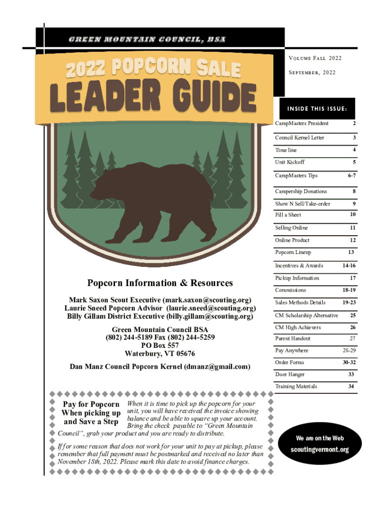 Camp Masters President2Council Kernel Letter3Time line4Unit Kickoff5