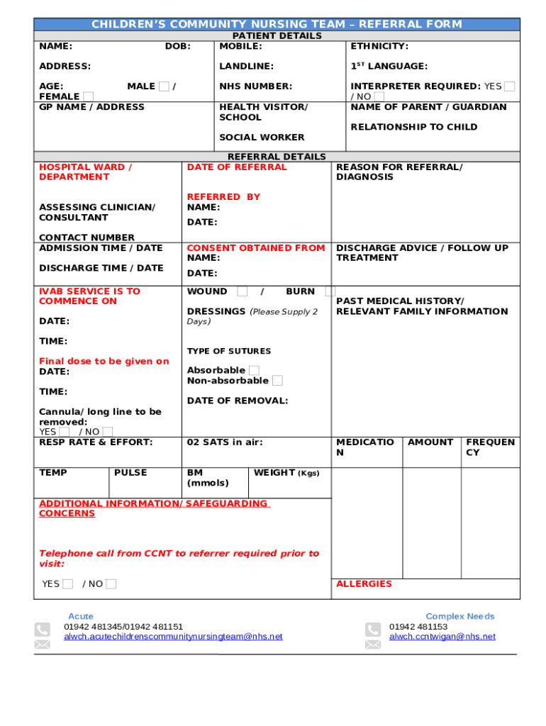 How to fill out Childrens Community Nursing Team Referral