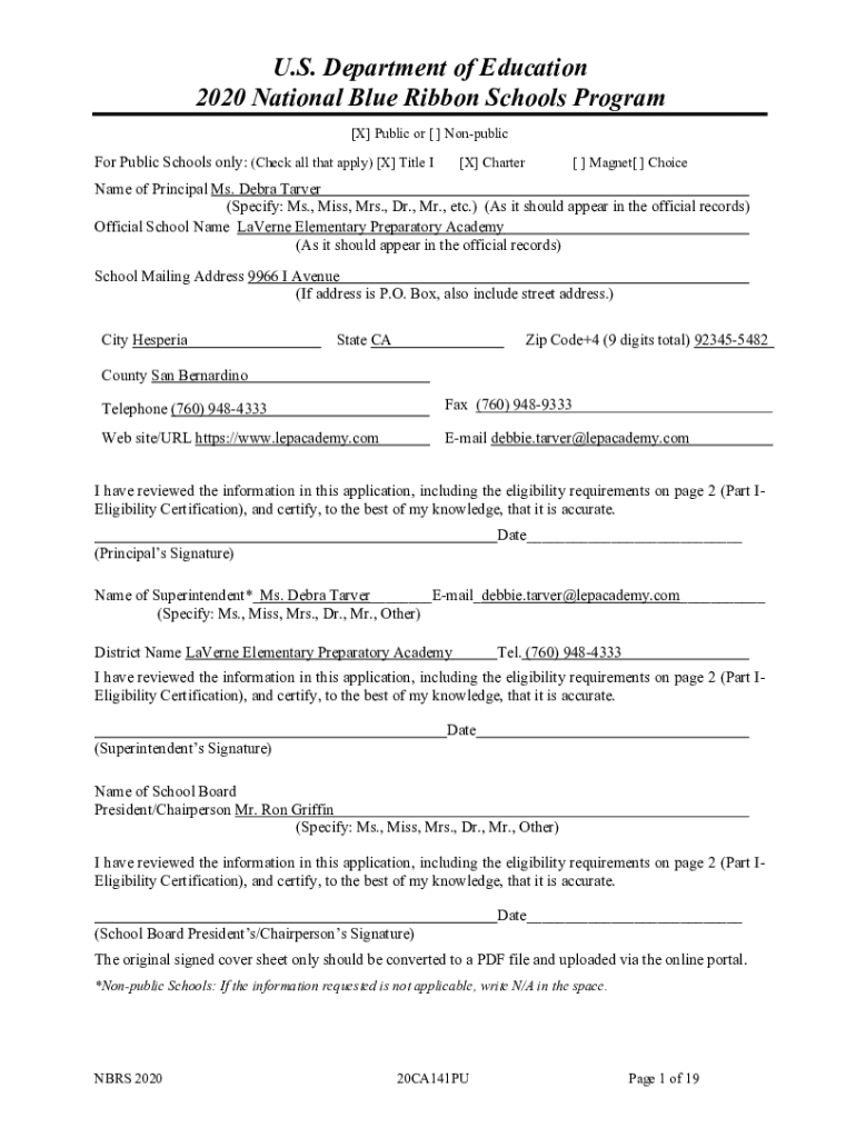 Get the free National Blue Ribbon School distinction awarded to ...