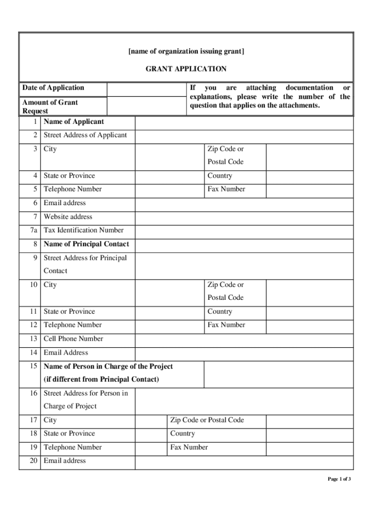 [name of organization issuing grant] GRANT APPLICATION Date of Application you are attaching documentation or explanations, please write the number of the question that applies on the attachments.