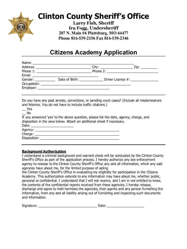 Get the free Citizens Academy Application - Clinton County Sheriff's Office - sheriff clintoncomo