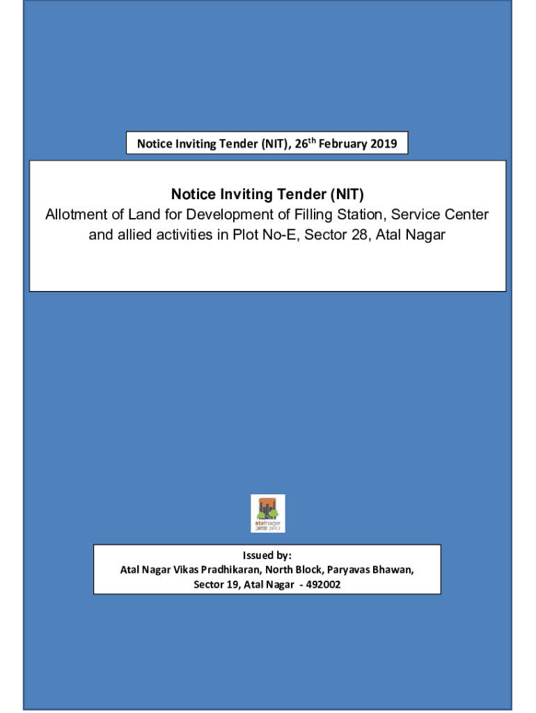 Notice Inviting Tender (NIT), 26th February 2019Notice Inviting Tender (NIT) Allotment of Land for Development of Filling Station, Service Center and allied activities in Plot Noe, Sector 28, Fatal