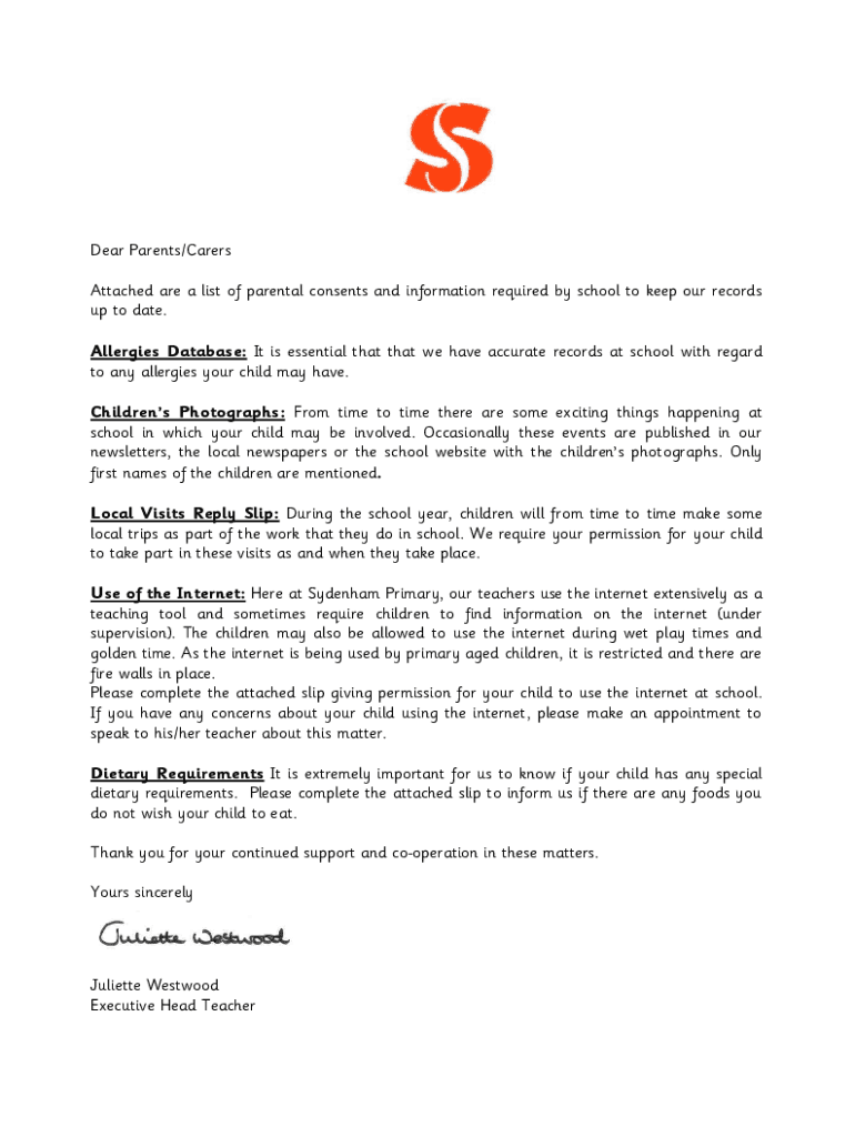 Dear Parents/Carers Attached are a list of parental consents and information required by school to keep our records up to date. Allergies Database: It is essential that we have accurate records at