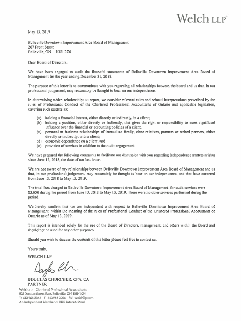 CITY OF Belleville DOWNTOWN IMPROVEMENT AREA BOARD OF MANAGEMENTDCONSOLIDATED FINANCIAL STATEMENTS December 31, 2018Management\'s Responsibility for the consolidated financial statements The consolidated