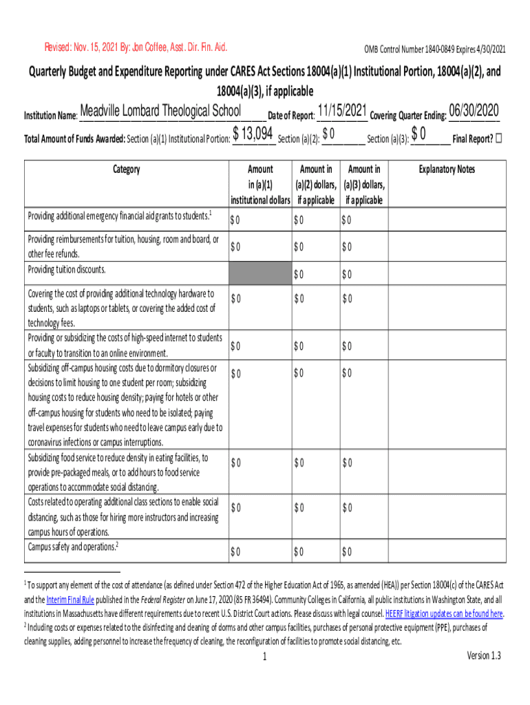 Revised: Nov. 15, 2021 By: Jon Coffee, Asst. Dir. Fin. Aid.OMBControlNumber18400849Expires4/30/2021