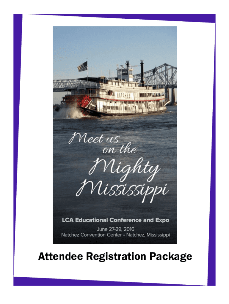 Attendee Registration Package Louisiana Claims Association 22nd Annual Educational Convention and Trade Exponent Us on the Mighty Mississippi June 2729, 2016 Natchez Convention Center, Natchez, MS