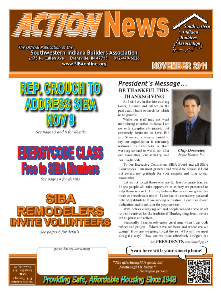The Official Publication of southwestern Indiana Builders Association2175 N. Cullen Ave Evansville, IN 47715www.Sibylline.org REP. CROUCH TO ADDRESS SBA NOV 8 See pages 5 and 8 for detailsENERGYCODE