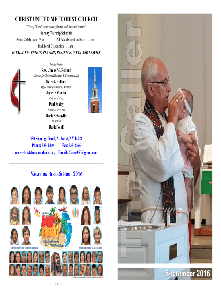 CHRIST UNITED METHODIST CHURCH Living Christs ways and exploding with love and service Sunday Worship Schedule Praise Celebration 9 am All Ages Education Hour 10 am Traditional Celebration 11 am TOTAL