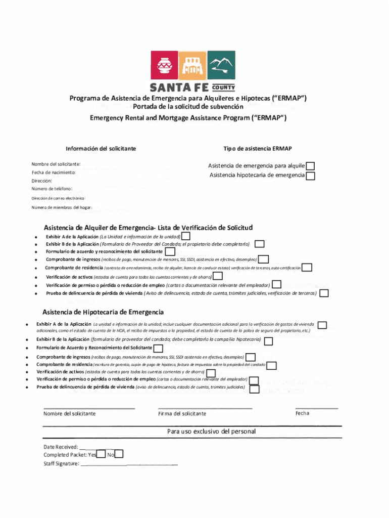 Santa FECOUNTYPrograma de Asistencia de Emergencia para Acquires e Hipsters (\” ERMA\”)