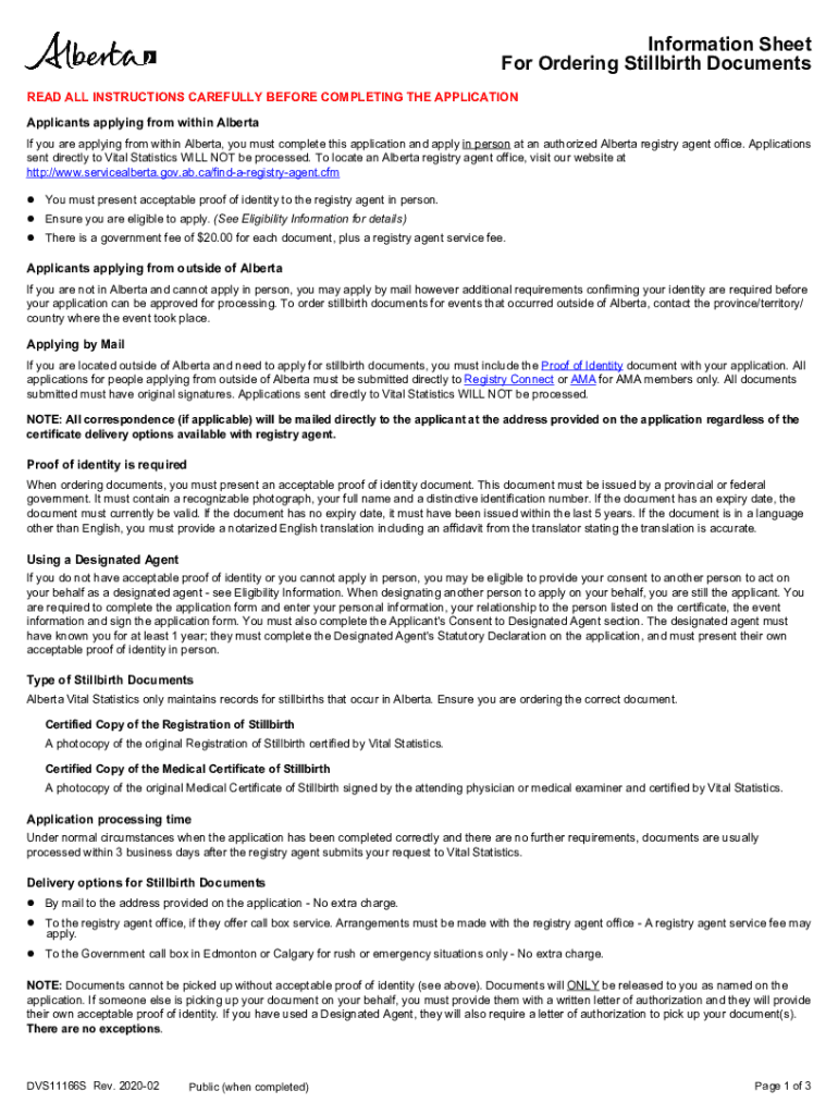 Information Sheet For Ordering Stillbirth Documents READ ALL INSTRUCTIONS CAREFULLY BEFORE COMPLETING THE APPLICATION Applicants applying from within Alberta If you are applying from within Alberta,