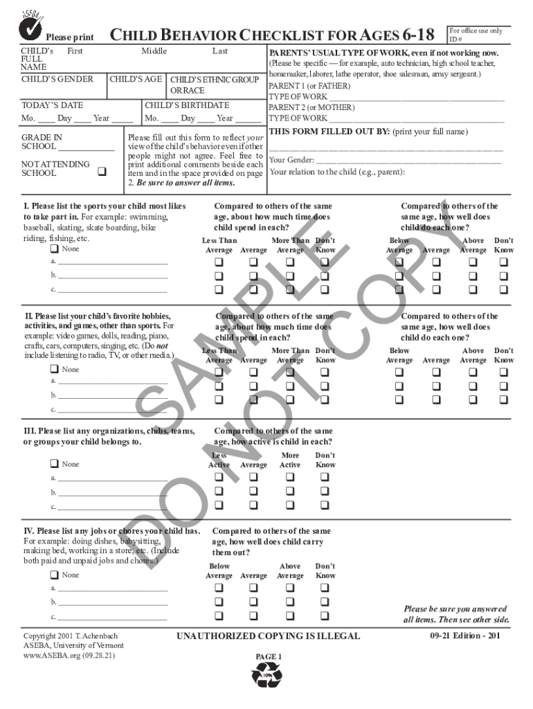 Child behaviour checklist pdf is a tool used to assess and document a child's behavior and emotional well-being.