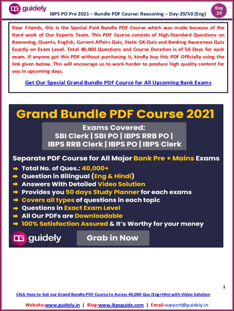 IPS PO Pre-2021 Bundle PDF Course: Reasoning Day29/50 (Eng) Dear Friends, this is the Special Paid Bundle PDF Course which was made because of the Hard work of Our Experts Team. This PDF Course consists