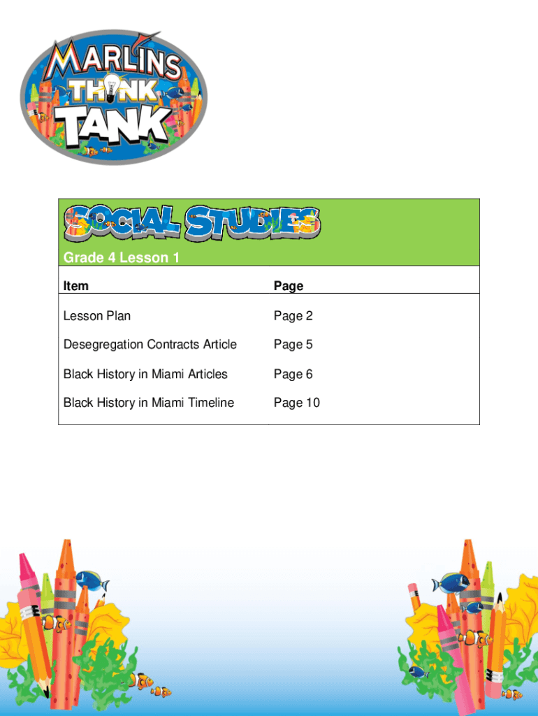 Grade 4 Lesson 1 ItemPageLesson Plan Page 2Desegregation Contracts Article Page 5Black History in Miami Articles Page 6Black History in Miami Timeline Page 10Marlins Think Tank: Fourth Grade Social