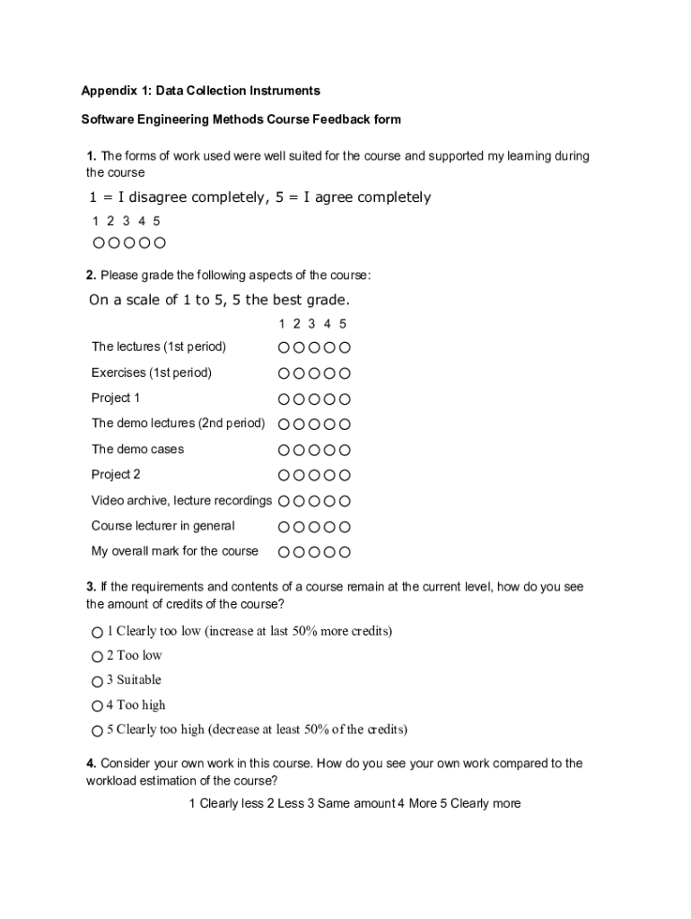 Appendix 1: Data Collection Instruments Software Engineering Methods Course Feedback form 1. The forms of work used were well suited for the course and supported my learning during the course1 I disagree