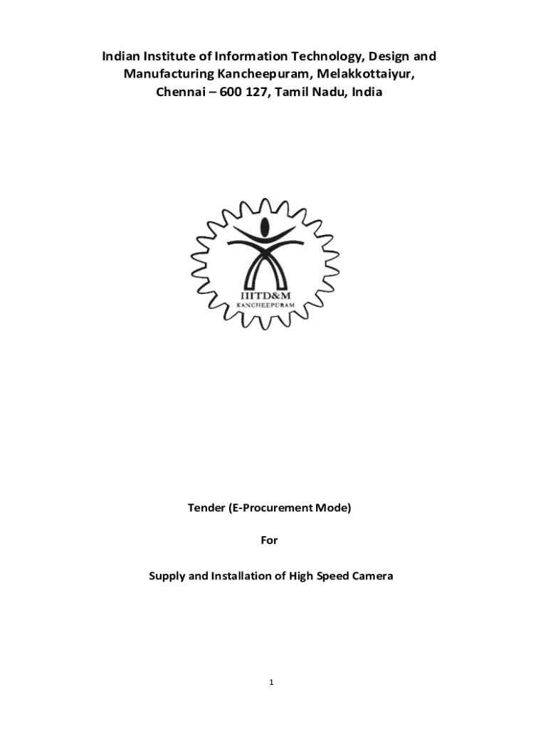 Indian Institute of Information Technology, Design and Manufacturing Kancheepuram, Melakkottaiyur, Chennai 600 127, Tamil Nadu, IndiaTender (Procurement Mode) For Supply and Installation of High Speed