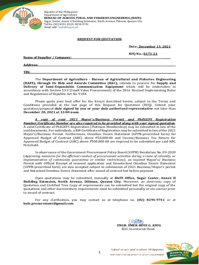 Republic of the Philippines Department of AgricultureBUREAU OF AGRICULTURAL AND FISHERIES ENGINEERING (BASE)Sugar Center, Annex II Building Extension, North Avenue, Dalian, Quezon City Tel No. (02)