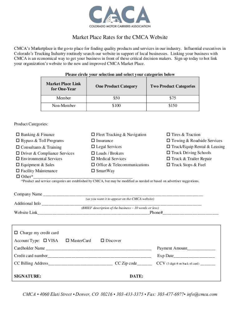 Market Place Rates for the YMCA Website CCAS Marketplace is the got place for finding quality products and services in our industry. Influential executives in Colorado's Trucking Industry routinely