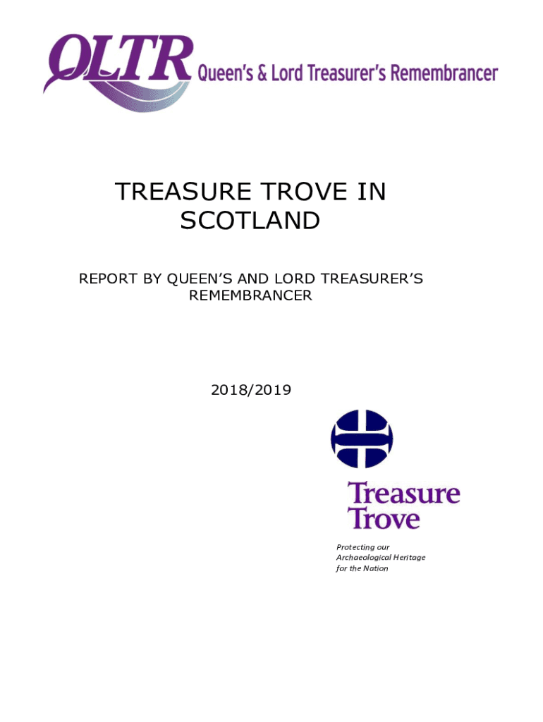 TREASURE TROVE IN SCOTLAND REPORT BY QUEENS AND LORD TREASURERS REMEMBRANCER2018/2019Protecting our Archaeological Heritage for the NationCONTENTSPage Foreword and Report by QLTR1Introduction3Remit