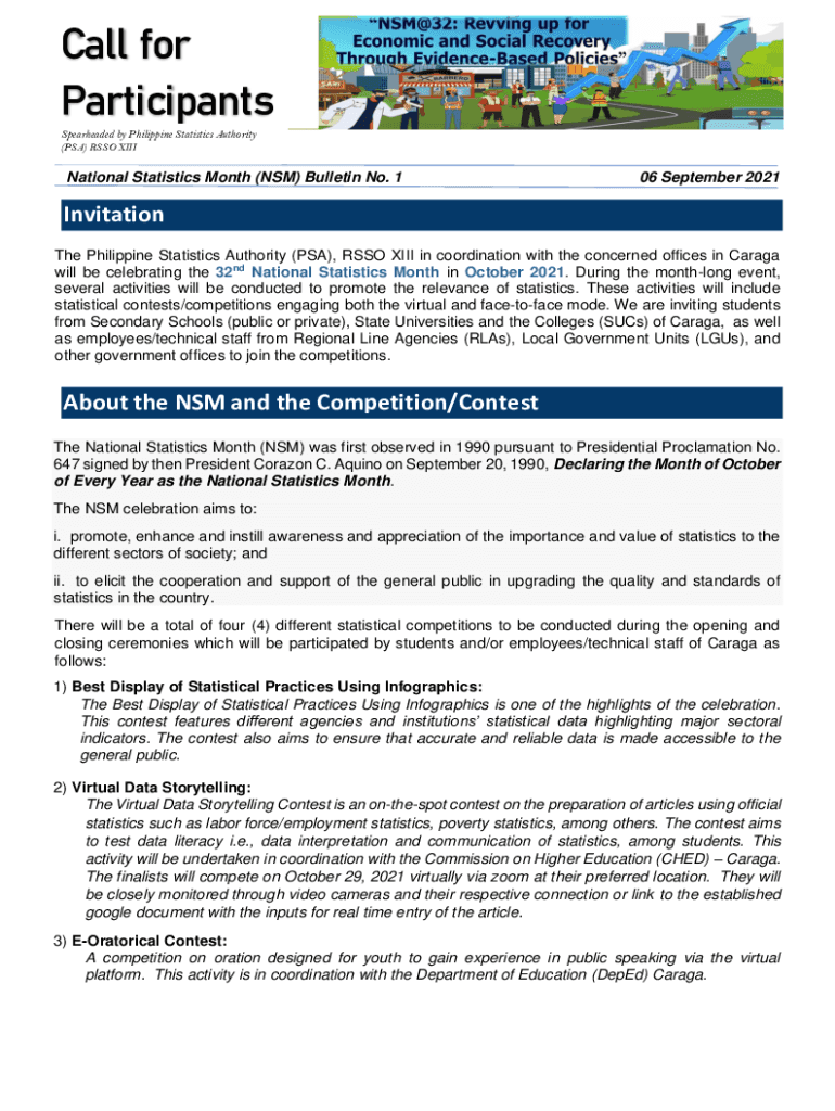 Call for Participants Spearheaded by Philippine Statistics Authority (PSA) RSS Binational Statistics Month (NSM) Bulletin No. 106 September 2021TIONALInvitation The Philippine Statistics Authority