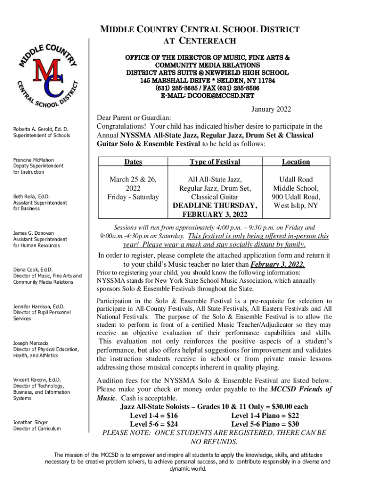 Get the free NYSSMA All-State & Jazz Registration Form - Mccsd.net
