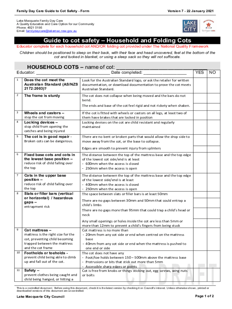 Family Day Care Guide to Cot Safety Conversion 7 22 January 2021Lake Macquarie Family Day Care A Quality Education and Care Option for our Community Phone: 4921 0156 Email: familydaycare@lakemac.nsw.gov.auGuide