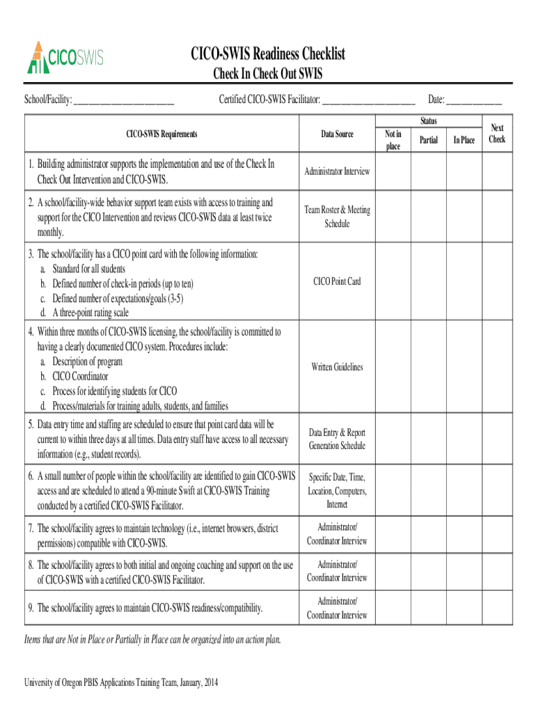 How to fill out swis readiness checklist?