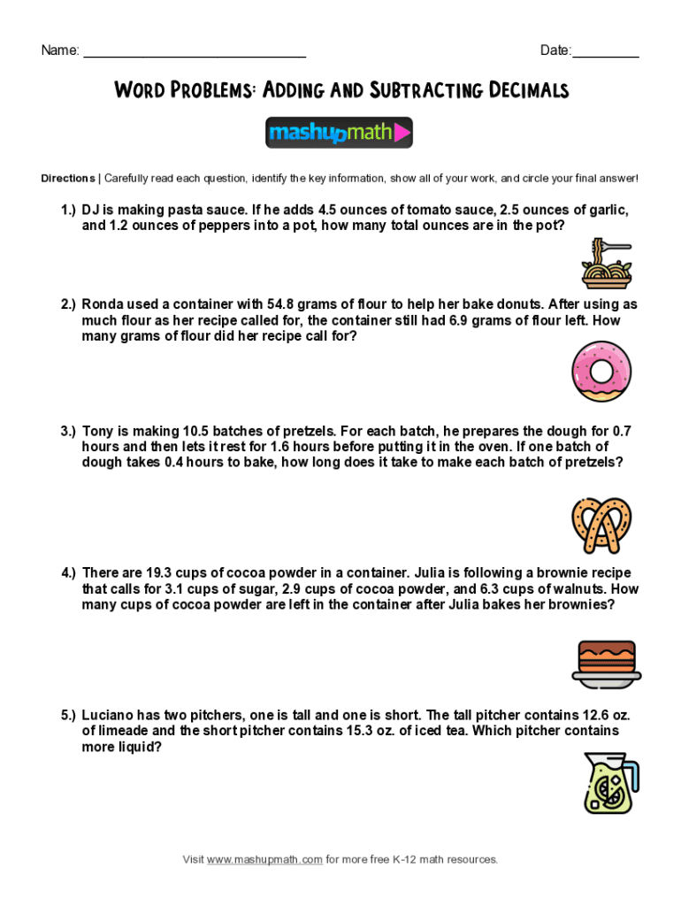 Name: ___Date:___Word Problems: Adding and Subtracting DecimalsDirections | Carefully read each question, identify the key information, show all of your work, and circle your final answer!1.) DJ is