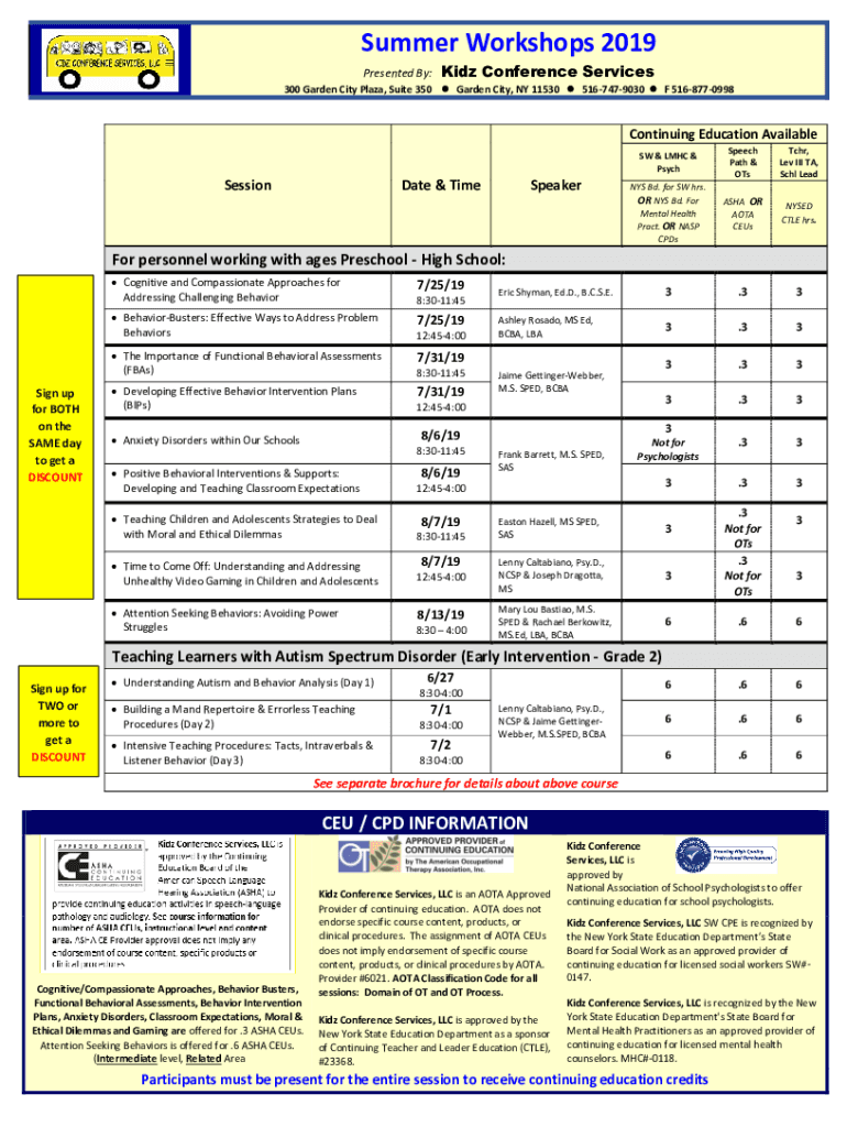 Summer Workshops 2019