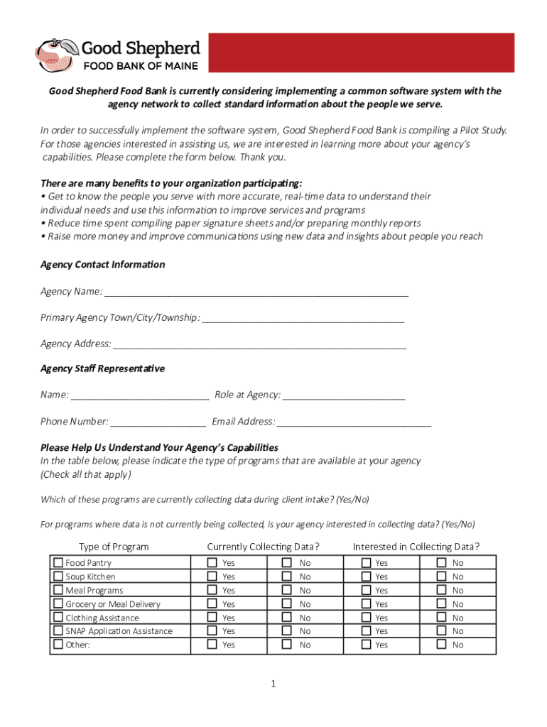 Good Shepherd Food Bank is currently considering implementing a common software system with the agency network to collect standard information about the people we serve. In order to successfully implement
