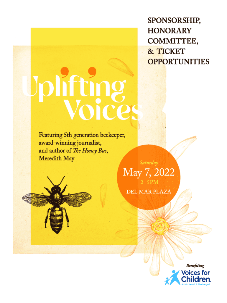 Benefiting Voices for Children Sponsorship, Honorary Committee & Ticket Opportunities Saturday, May 7, 2022, 2 PM 5 PM Del Mar Plazas Ocean View Walkabout VOICES FOR CHILDREN Voices for Children believes