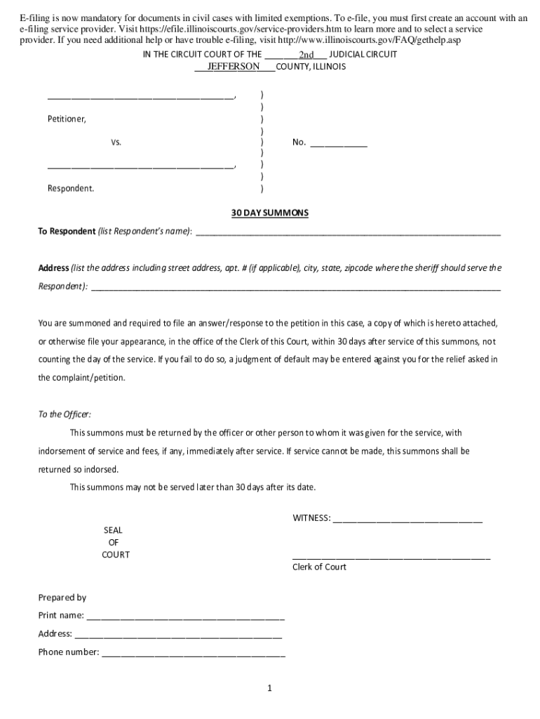 Filing is now mandatory for documents in civil cases with limited exemptions. To file, you must first create an account with a filing service provider. Visit https://efile.illinoiscourts.gov/serviceproviders.htm