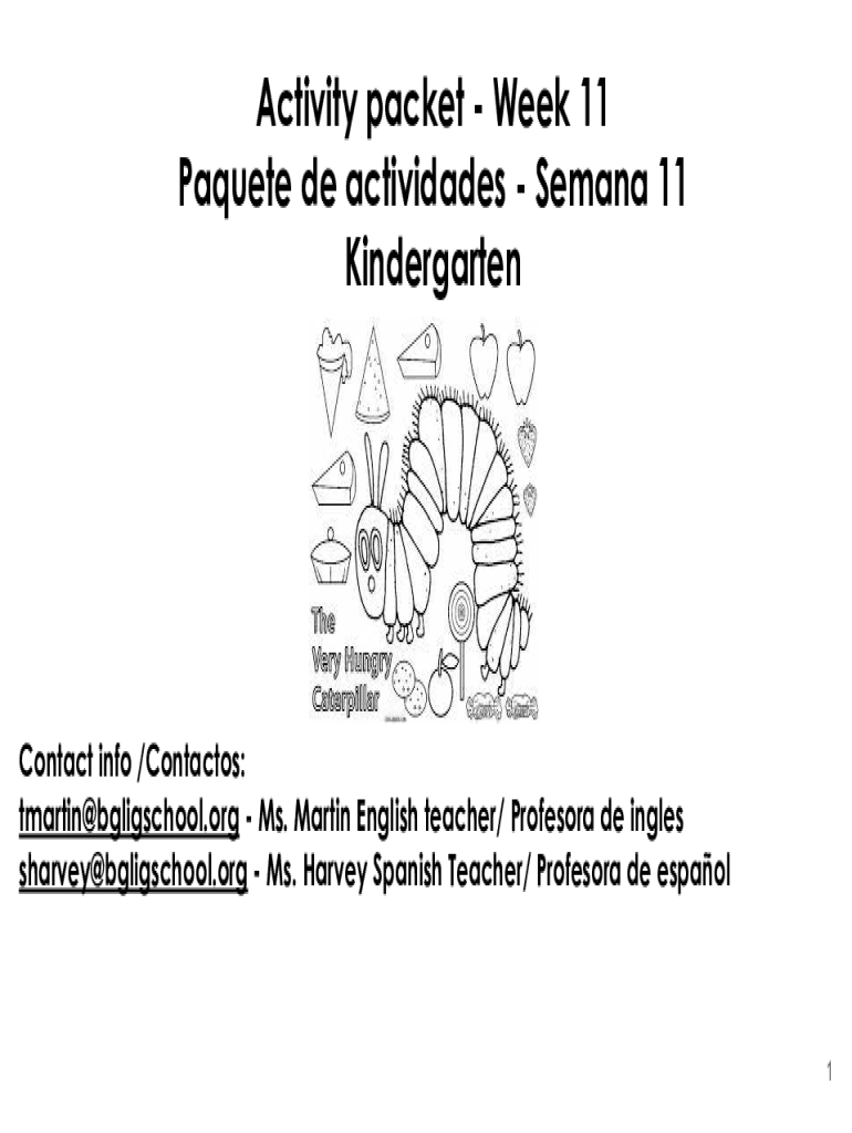 Activity packet Week 11 Paiute de activities Demand 11 KindergartenContact info /Contacts: tmartin@bgligschool.org Ms. Martin English teacher/ Professor DE singles sharvey@bgligschool.org Ms. Harvey