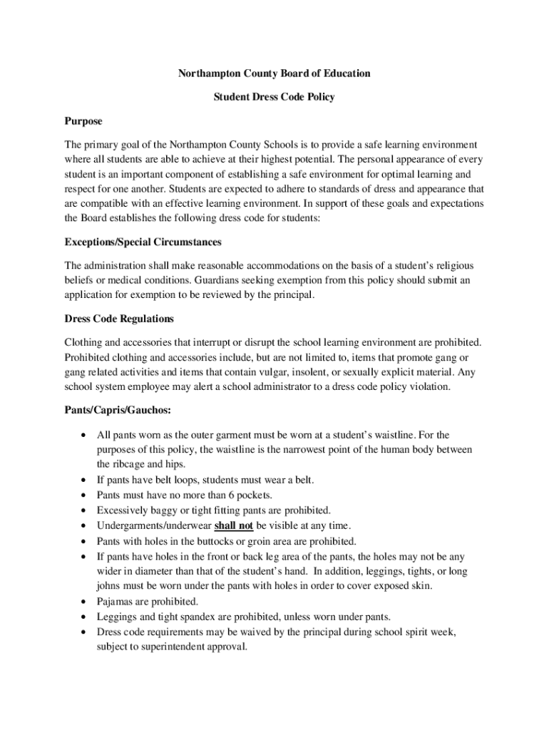 Get the free Northampton County Board of Education Student Dress Code Policy ...
