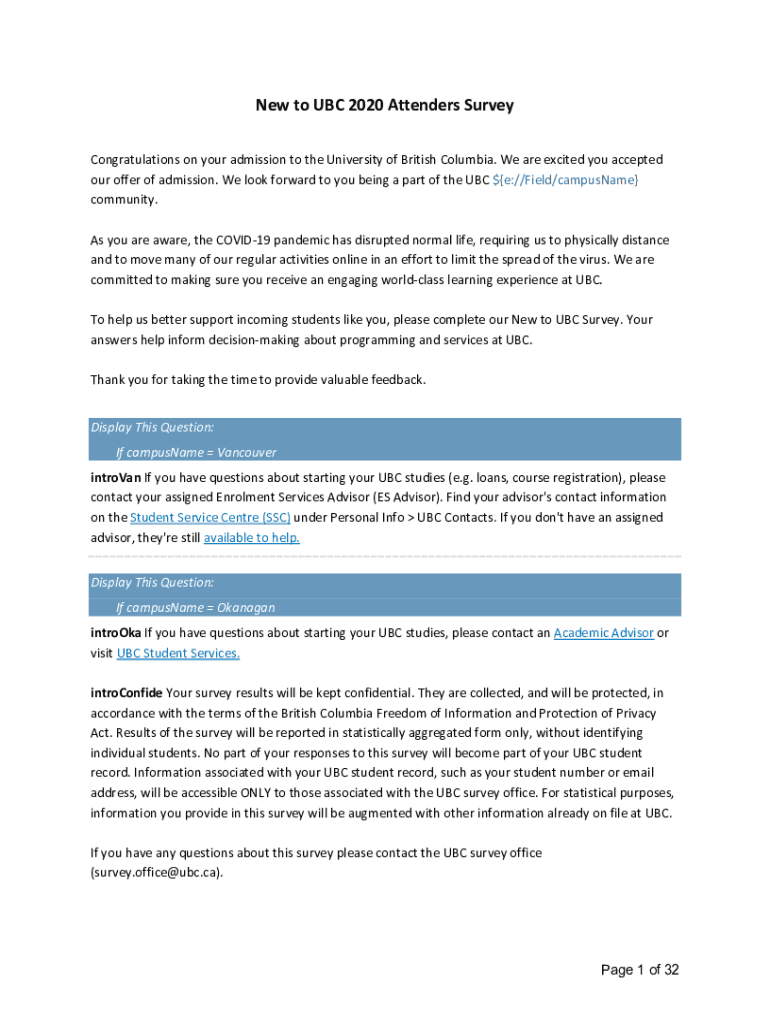 New to UBC 2020 Attenders Survey Congratulations on your admission to the University of British Columbia. We are excited you accepted our offer of admission. We look forward to you being a part of