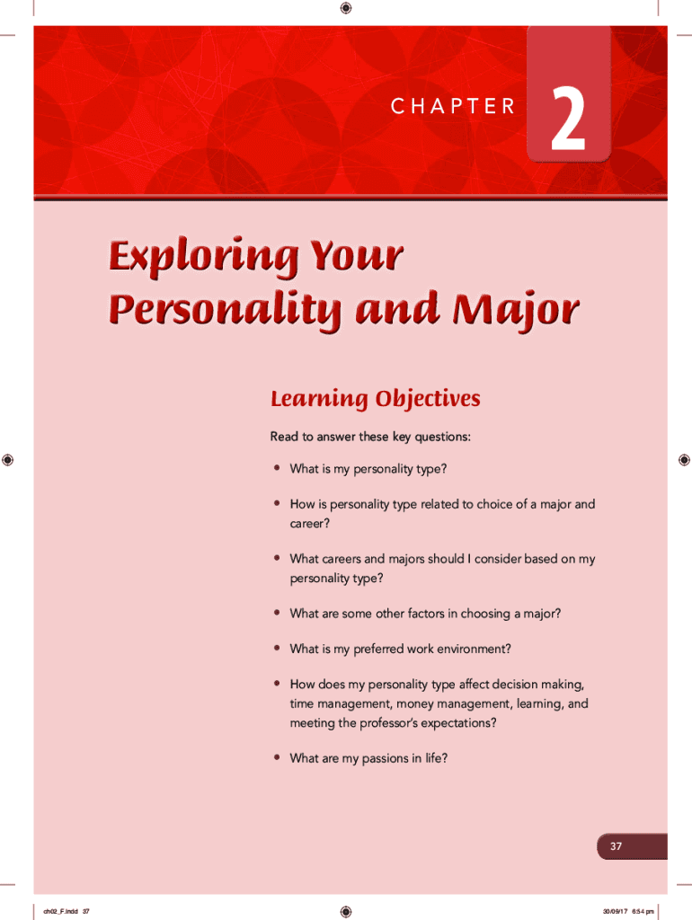 CHAPTER2Exploring Your Personality and Major Learning Objectives Read to answer these key questions:What is my personality type? How is personality type related to choice of a major and career? What