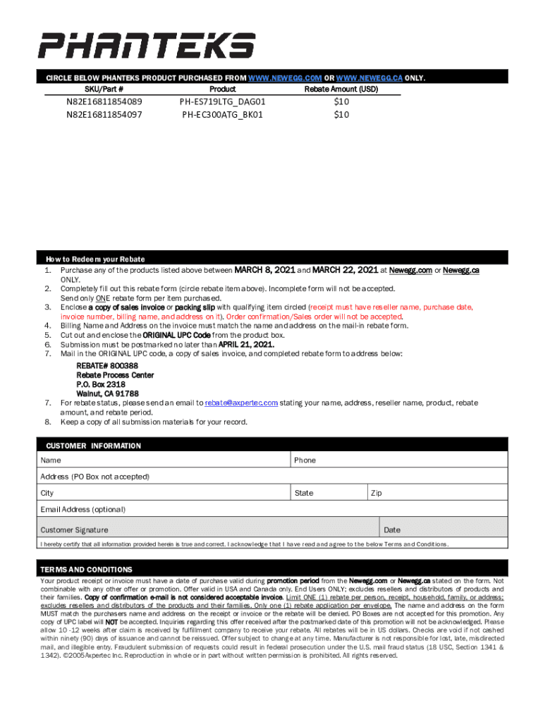 CIRCLE BELOW PLANTERS PRODUCT PURCHASED FROM WWW.NEWEGG.COM OR WWW.NEWER.CA ONLY. SKU/Part # Product Rebate Amount (USD)N82E16811854089 N82E16811854097PHES719LTG_DAG01 PHEC300ATG_BK$$011010How to