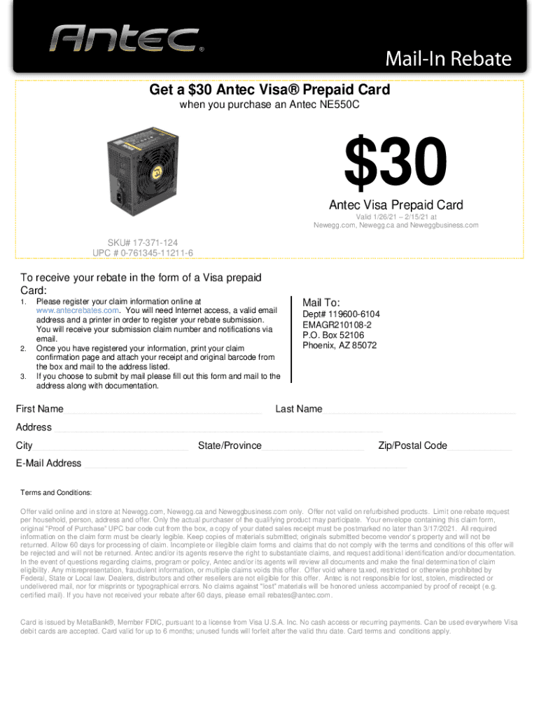 Get the free Get a $30 Antec Visa Prepaid Card - Newegg