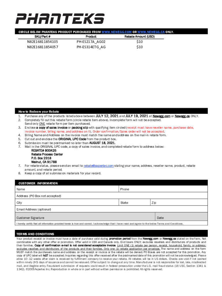 CIRCLE BELOW PLANTERS PRODUCT PURCHASED FROM WWW.NEWEGG.COM OR WWW.NEWER.CA ONLY. SKU/Part # Product Rebate Amount (USD)N82E16811854105 N82E16811854057PHES217A_AG02 PHES314ETG_AG$$1010How to Redeem