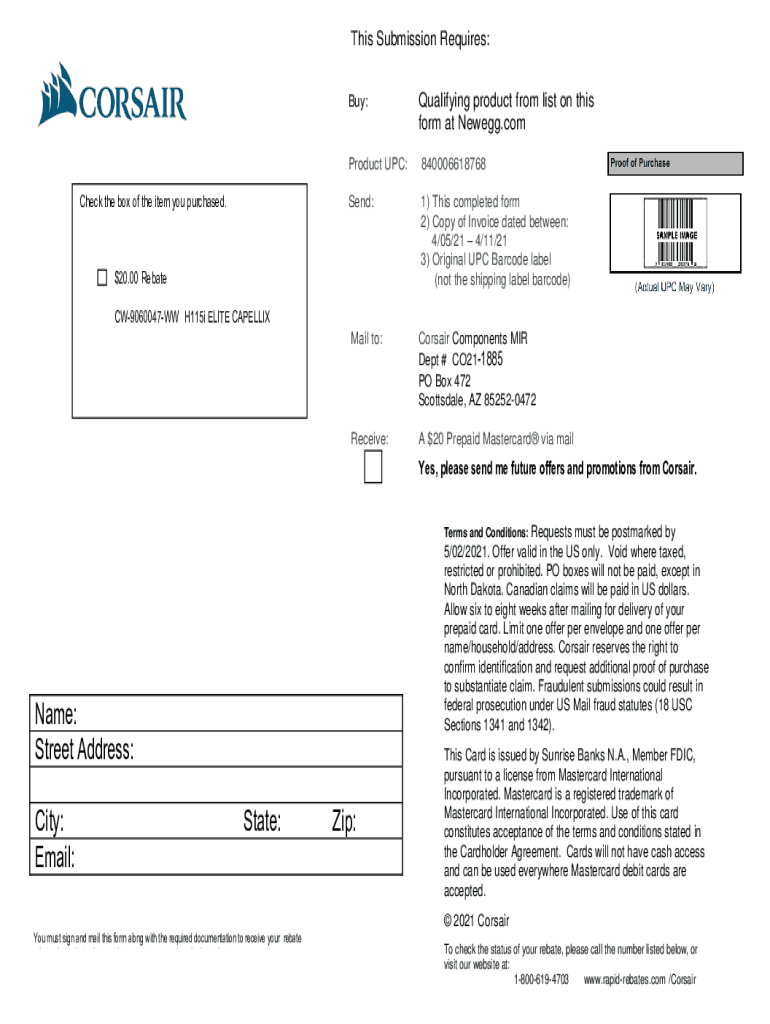 This Submission Requires: Buy:Check the box of the item you purchased. Qualifying product from list on this form at New egg. Product UPC:840006618768Send:1) This completed form 2) Copy of Invoice