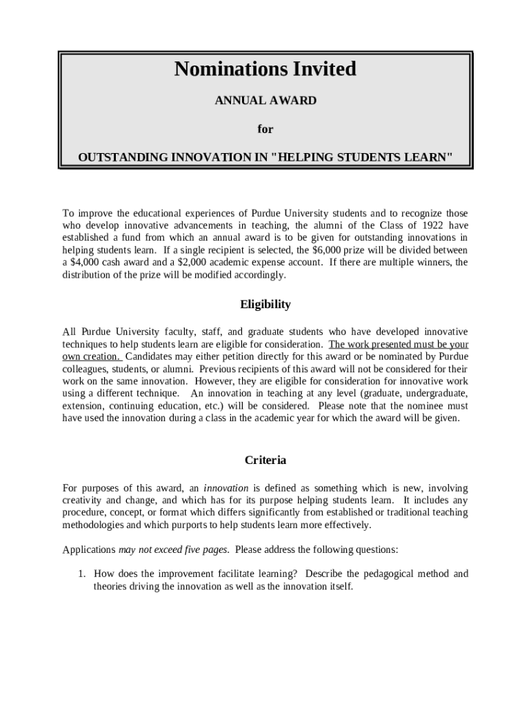 Nominations Invited ANNUAL AWARD for word template: frequently asked questions