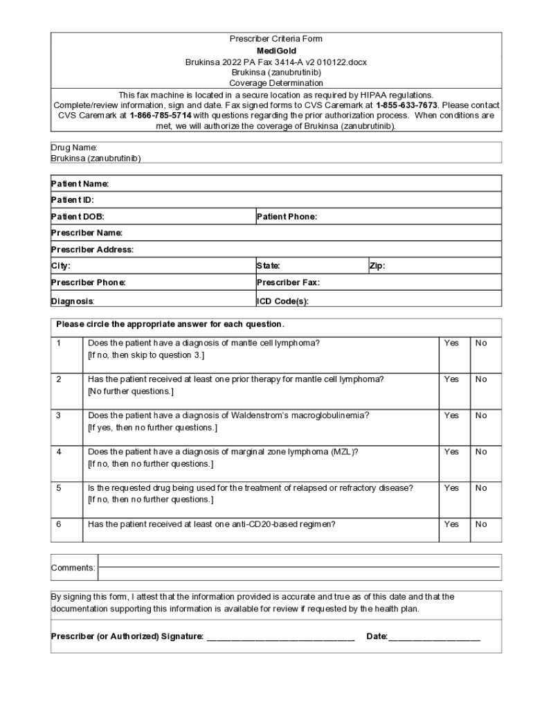 Get the free Brukinsa 2022 PA Fax 3414-A v2 010122. Brukinsa 2022 PA Fax 3414-A v2 010122