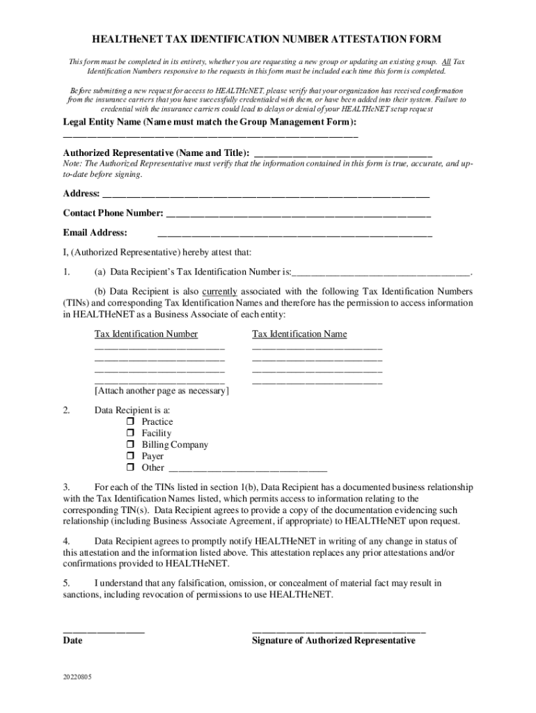Get the free HEALTHeNET TAX IDENTIFICATION NUMBER ...