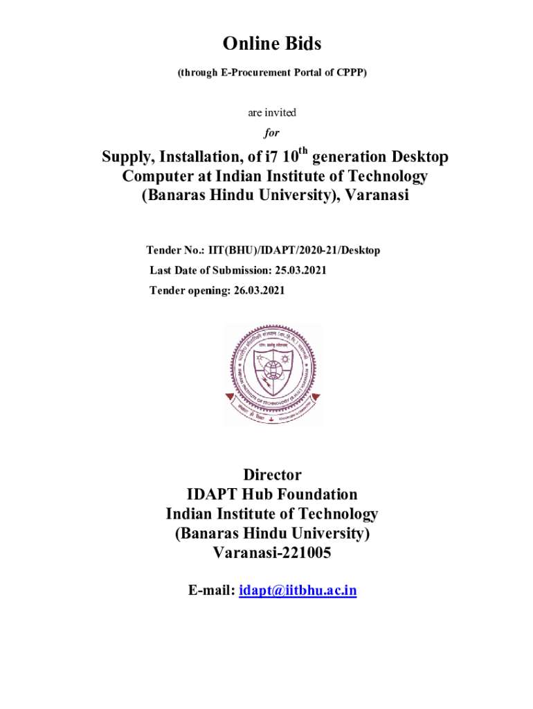 Online Bids (through Epoch present Portal of PPP)are invited for supply, Install I action, off i7 10thh generation Desktop D p Comp Peter ATT Indian n Institute of T Technology University), V (Bananas