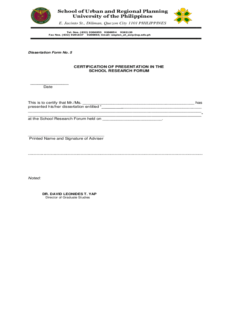 Get the free Dissertation Form No. 2