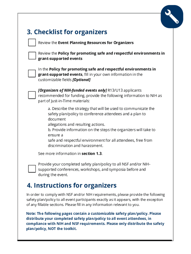 Promoting Safe and Respectful Environments in NSF and Supported Conferences, Workshops, and Symposia A toolkit for all UC Berkeley recipients of NSF and/or NIH grants Published September 20221) Introduction