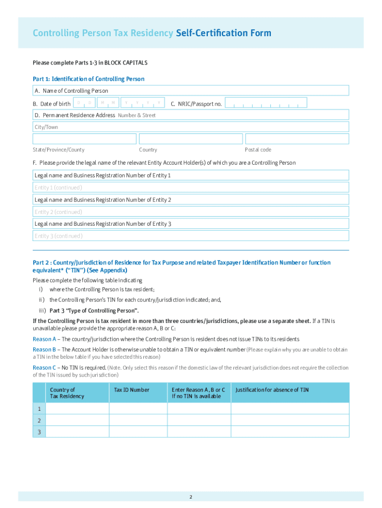 Controlling Person Tax Residency Recertification Form Instructions Please read these instructions before completing the form. Regulations on Common Reporting Standard (CRS) require ROB Bank Nominees