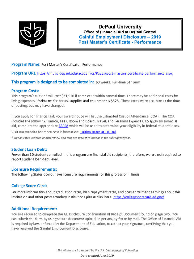DePaul UniversityOffice of Financial Aid at DePaul CentralGainful Employment Disclosure 2019
